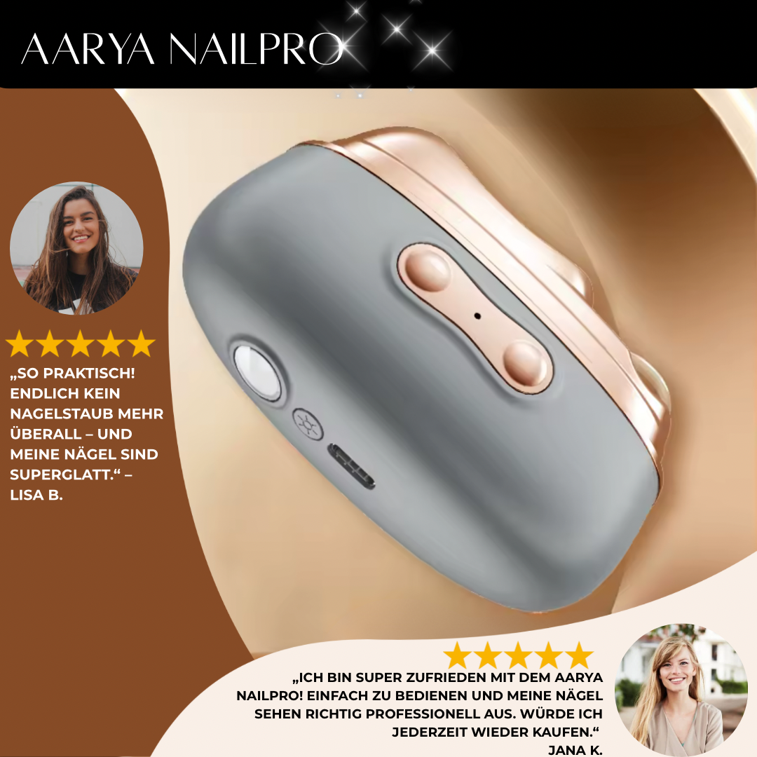 Sag bye zu teuren Maniküre-Terminen und stundenlangem Trocknen – mit dem AARYA NAILPRO™ erreichst du salonperfekte Nägel in wenigen Minuten.