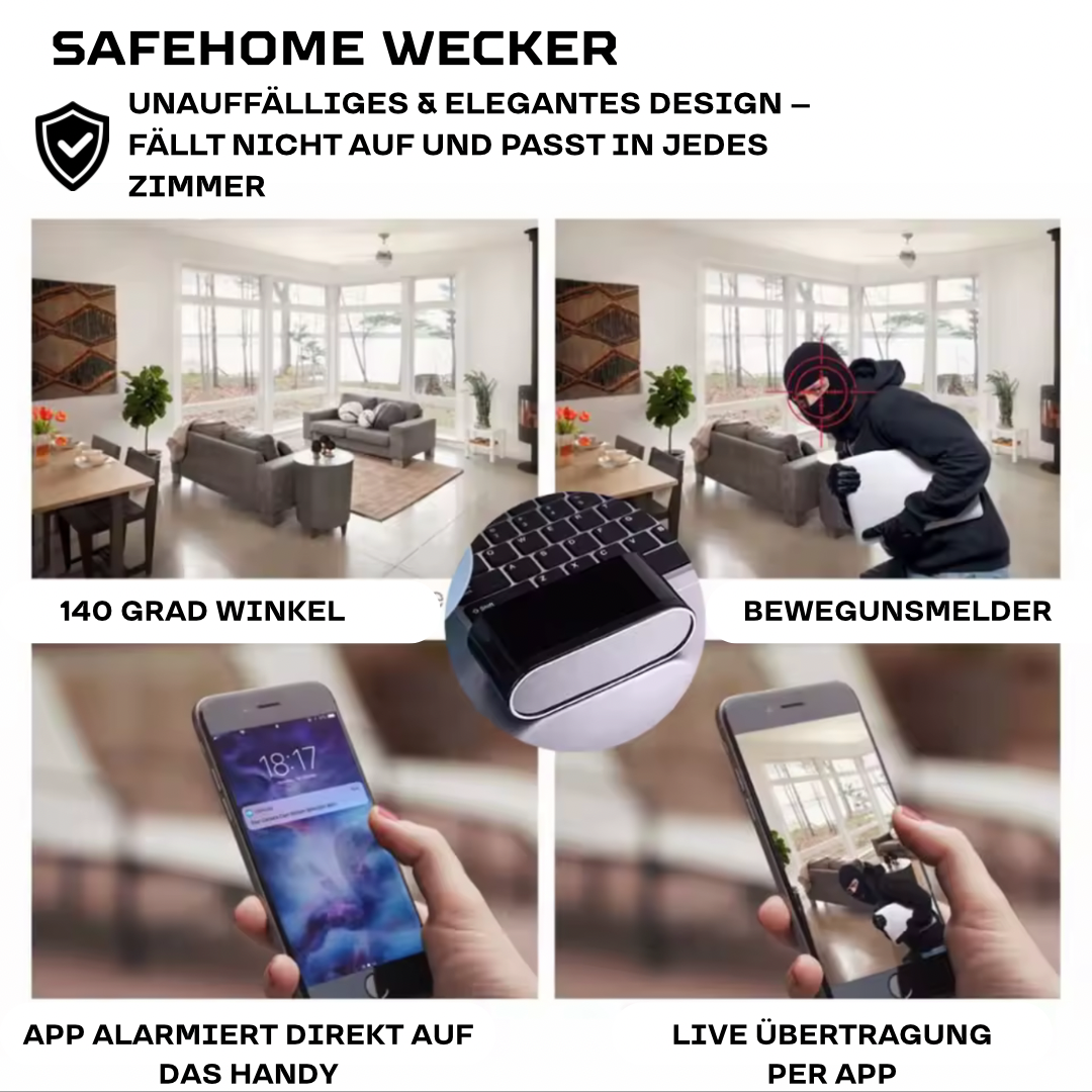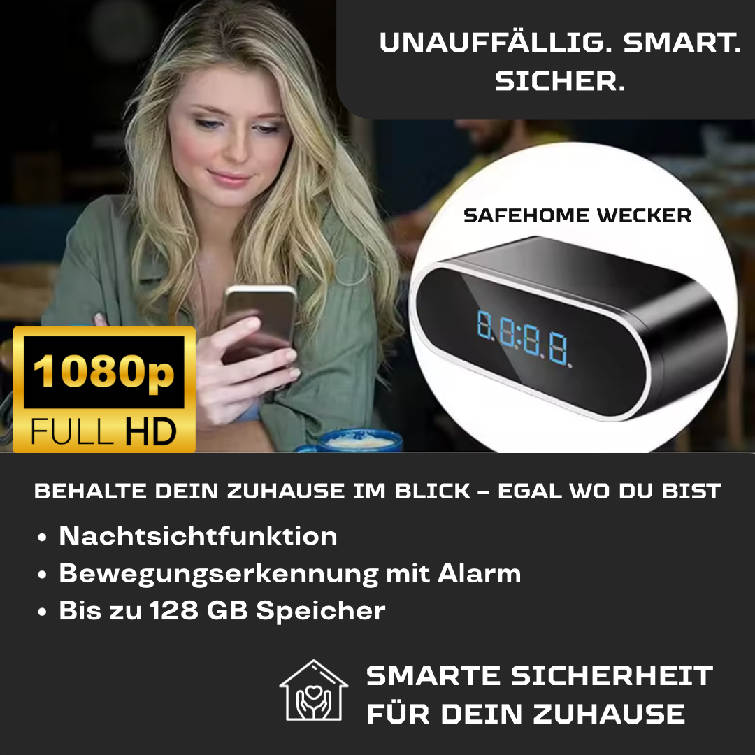 Hol dir jetzt deine SAFEHOME WECKER Kamera und genieße 24/7 Schutz!