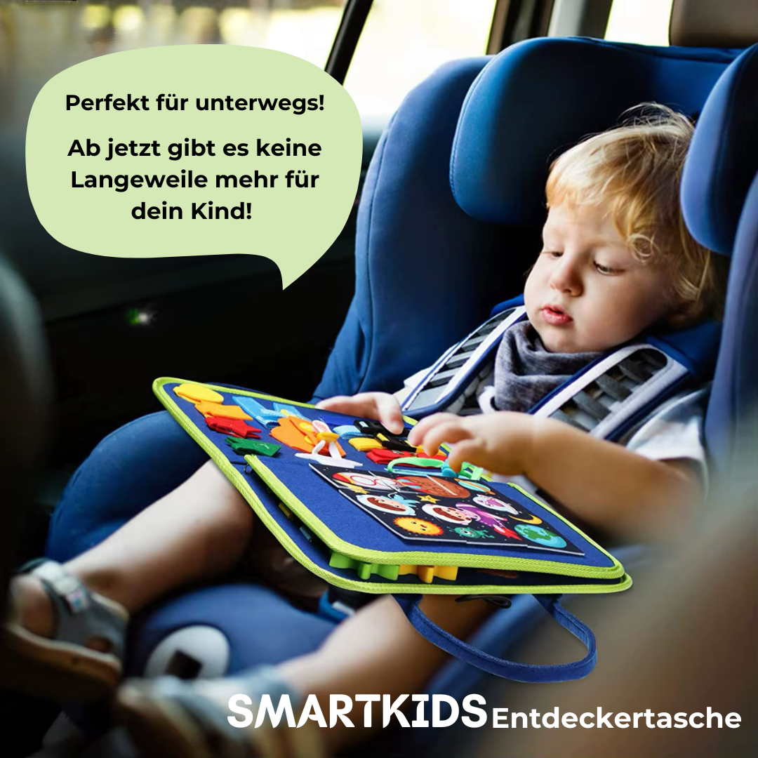 Ob im Auto, im Flugzeug oder im Restaurant – mit der SmartKids Entdeckertasche wird Langeweile zum Abenteuer!
